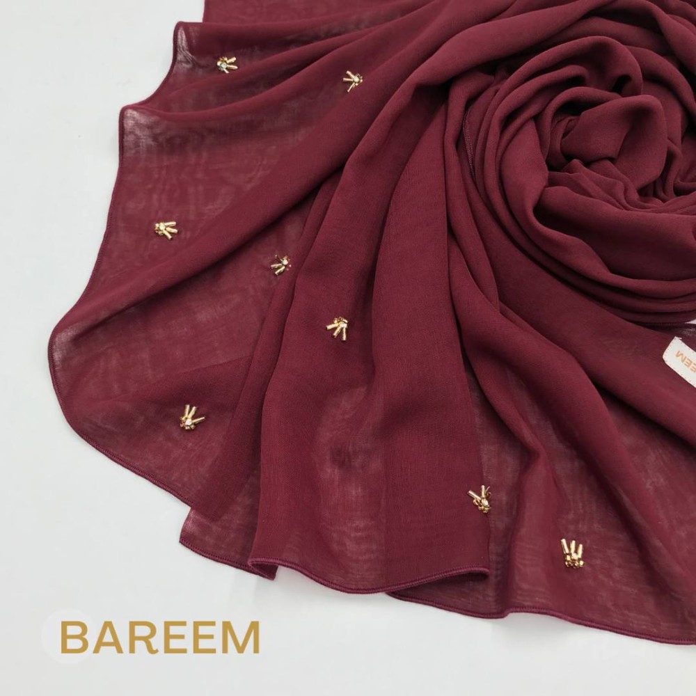 طرحة بوال بلون مارون مزينه بخرز لونه ذهبي بطول 2 متر تغسل الطرحه علي اليد و بدون مبيضات ولا تعصر بشده ،ستكونين دائمًا في قمة الأناقة والجاذبية. احصلي عليها اليوم و امنحي إطلالتك لمسة من السحر والجمال.