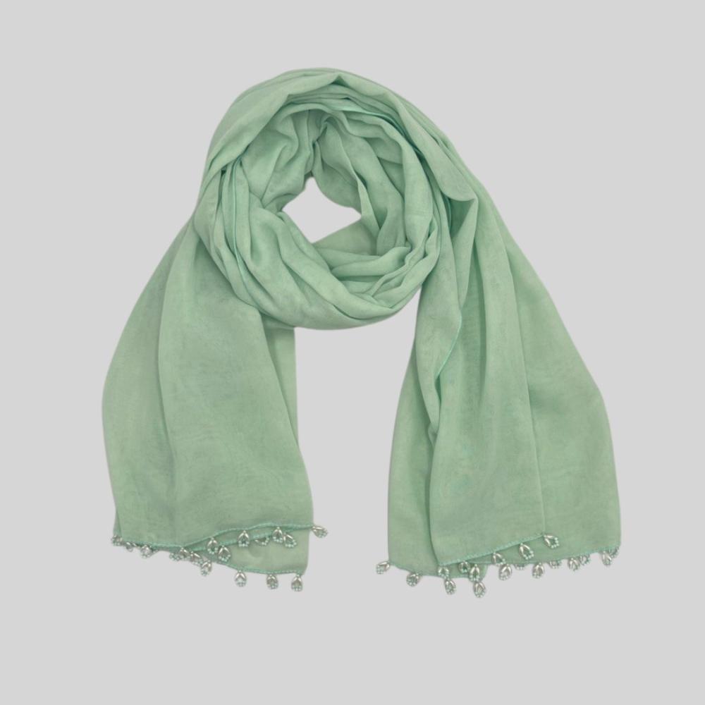 - التصميم: الطرحة تتميز بتفاصيل جمالية عند الحواف، حيث توجد كرات فضية صغيرة تضيف لمسة من الأناقة والتميز. يمكن ارتداؤها بطرق مختلفة لإضفاء لمسة عصرية على أي إطلالة.