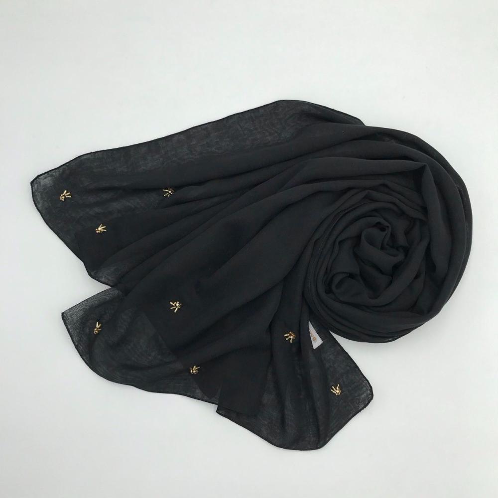 - تكوى الطرحة بدرجة حرارة منخفضة 110C تقريبا .